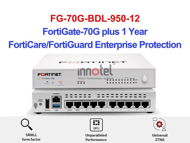 Dòng thiết bị FortiGate FG-70G-BDL-950-12 tích hợp tường lửa, SD-WAN và các tính năng bảo mật trong một thiết bị duy nhất, lý tưởng để xây dựng mạng an toàn cho các chi nhánh phân tán và tái cấu trúc kiến trúc WAN ở mọi quy mô.