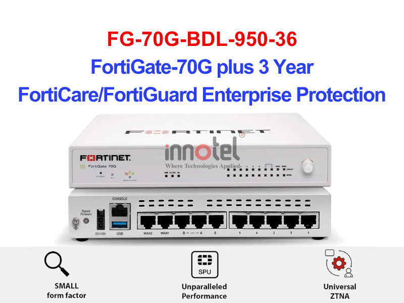 Dòng thiết bị FortiGate FG-70G-BDL-950-36 tích hợp tường lửa, SD-WAN và các tính năng bảo mật trong một thiết bị duy nhất, lý tưởng để xây dựng mạng an toàn cho các chi nhánh phân tán và tái cấu trúc kiến trúc WAN ở mọi quy mô.