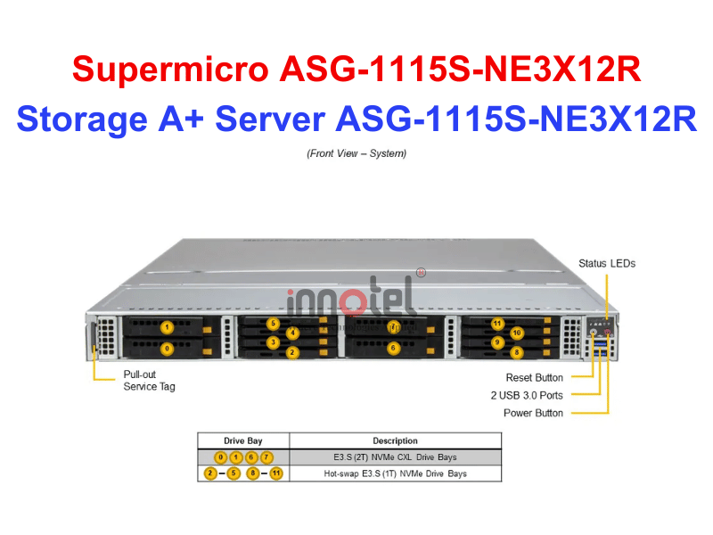 Trên đây là giới thiệu về thiết bị lưu trữ Supermicro SuperServer ASG-1115S-NE3X12R do Innotel phân phối là giải pháp lưu trữ hiệu suất cao, được thiết kế chuyên biệt nhằm tối ưu hóa tốc độ và đáp ứng đa dạng nhu cầu của doanh nghiệp. Nếu Quý Khách cần tư vấn hoặc muốn tìm hiểu chi tiết về sản phẩm, vui lòng liên hệ bộ phận kỹ thuật của chúng tôi để được hỗ trợ tận tình và chính xác nhất.